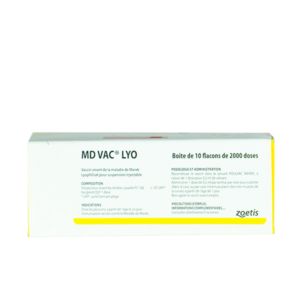 € 23,08 TTCVaccin vivant lyophilisé contre la maladie de Marek chez les poussins de 1-3 jours d’âge. 2000 doses. Vaccin fourni sans solvant.
