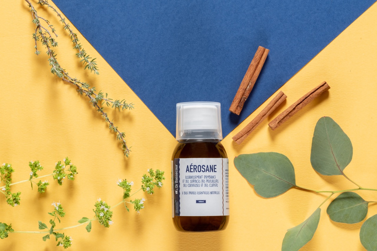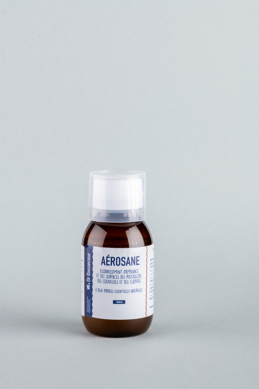 AÉROSANE permet d’assainir l’ambiance en cas de défaut d’ambiance, de risques sanitaires ou de périodes critiques pour les animaux. Produit à base d’huiles essentielles naturelles.