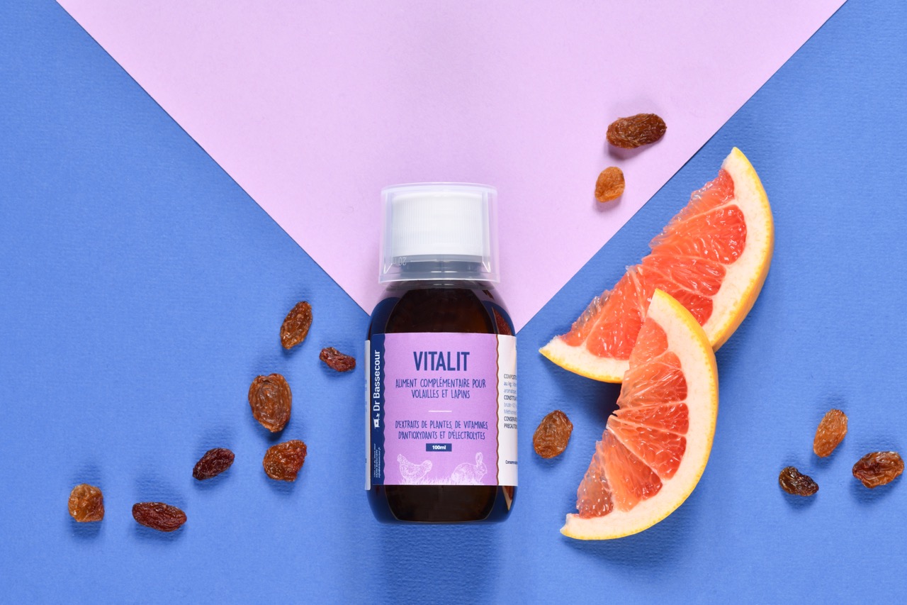 VITALIT aide à lutter contre le stress oxydatif et thermique. Les polyphénols, les vitamines C et E ont des propriétés reconnues pour stimuler le système immunitaire. VITALIT s’utilise lors des périodes de stress : coup de chaleur, démarrage des jeunes, mise-bas, atténuer les réactions post-vaccinales et pour accompagner les passages viraux. Les électrolytes (sodium, magnésium, potassium) favorisent la réhydratation lors de ces périodes de stress.